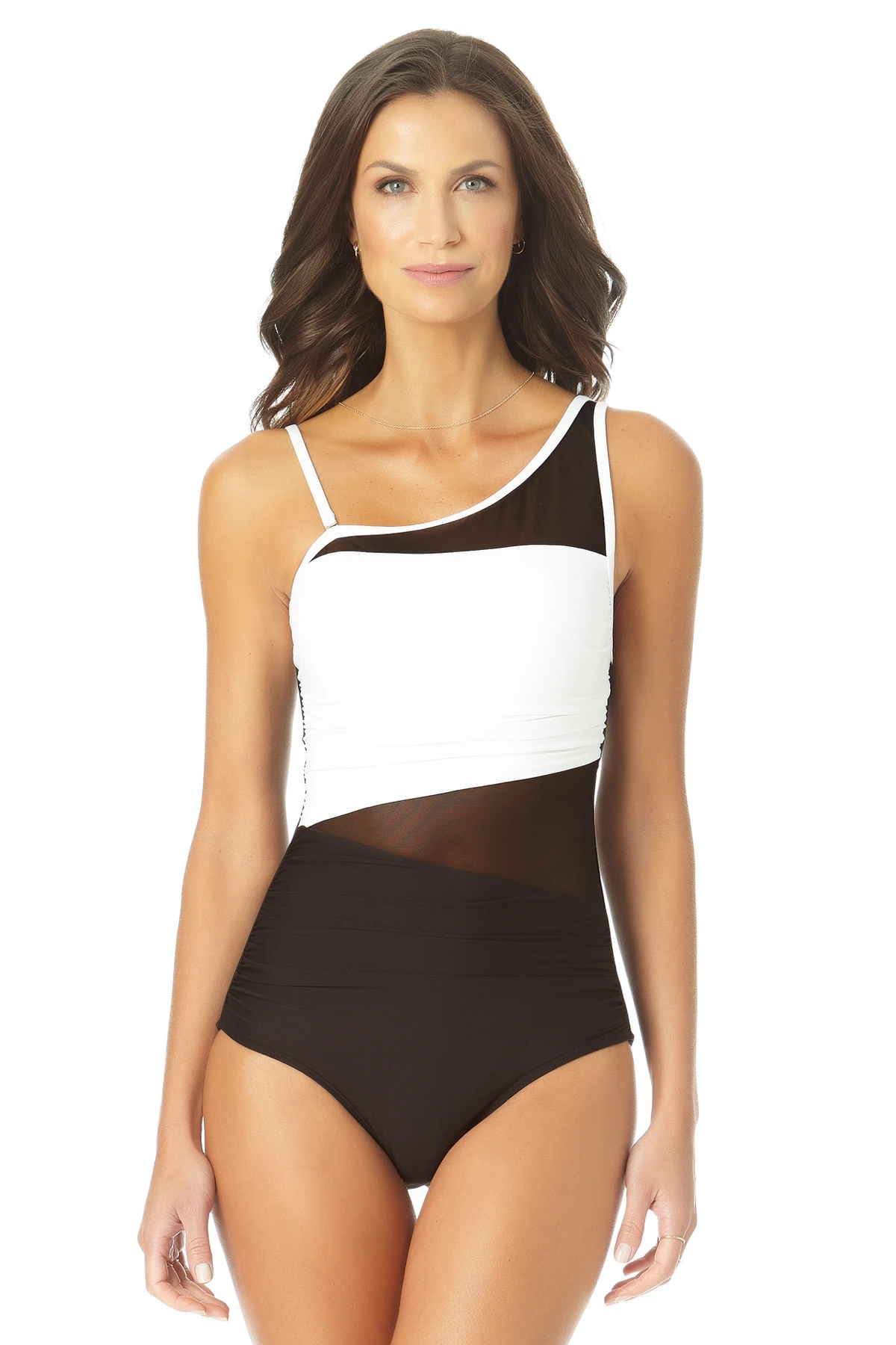 Anne Cole – Assymetrical Mesh One Piece Swimsuit