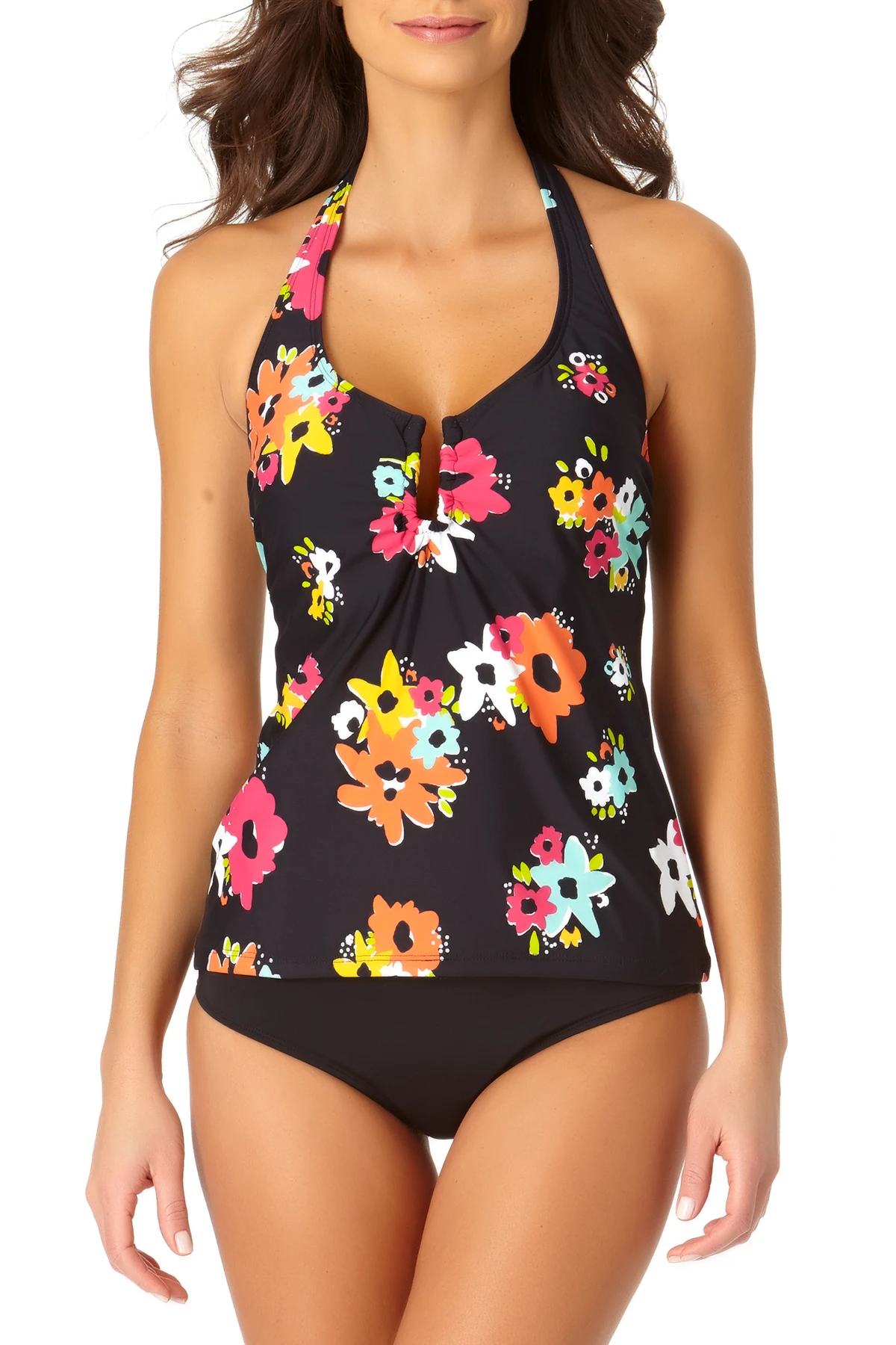 Pair this fresh and vibrant halter tankini with a matching bottom from Anne Cole’s Island Bloom collection for a look that’s at once polished and on-trend. Or, combine with a solid black bikini bottom for a classic and sophisticated ensemble. With a healthy dose of sun and water, your inner flower child will be in full bloom all season. You’ll just have to make sure to make plenty of jaunts to the shore or pool to keep up your colorful look well-nourished.