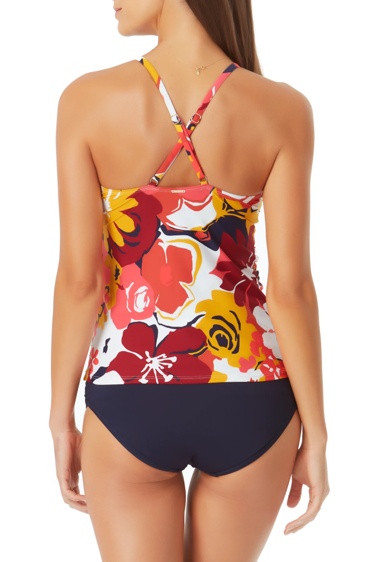 Lounge under swaying palm trees and sunshine with this high neck beaded tankini top. Our tankini is designed with a gold beaded detail and our Wallflower pattern to add a little island flair to your beach day. A high neck cut flatters your frame and shows off your shoulders for a look that is both stylish and chic. Adjustable over-the-shoulder straps offer comfortable and secure support for all your activities. Complete the look with any Anne Cole bikini bottom!