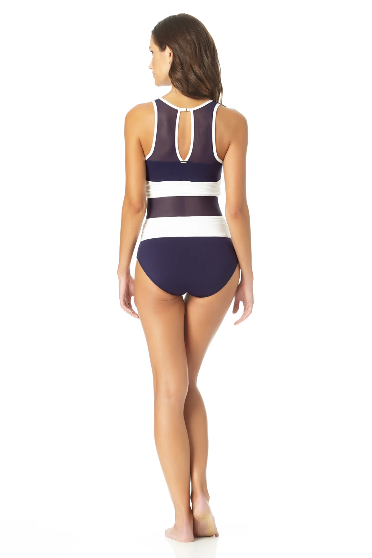 Anne Cole – High Neck Mesh One Piece Swimsuit