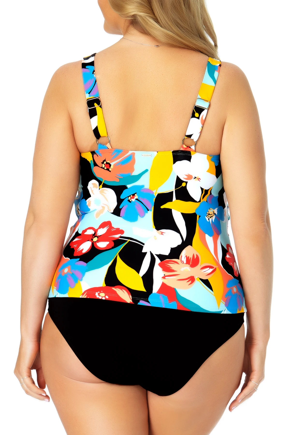 Inspired by blooming flowers, this colorful tankini top features a square neck cut and a tropical print for a memorable summer look. Whether you’re relaxing in the sun or lounging at the beach, you’ll love wearing this square neck tankini top to your next beach day. Shirred sides create a figure-flattering shape, while the adjustable straps provide comfortable support and a perfect fit. Pair this eye-catching square neck tankini top with our convertible hi-low bikini bottom for a complete look!