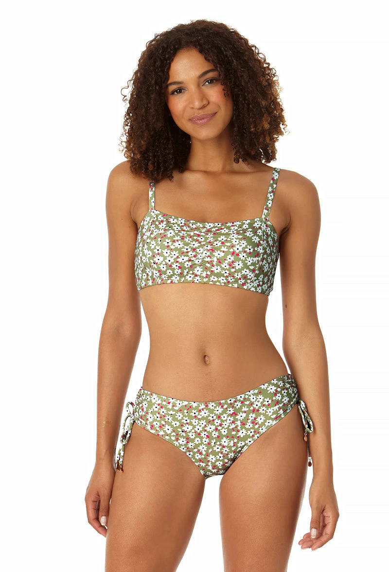 Our Center Cinch Bandeau Bikini Swim Top is the perfect companion to take on your next vacation getaway. This swim top’s floral print and flattering bandeau cut will show off your best assets and have heads turning while you lounge by the pool. Adjustable and removable over-the-shoulder straps, and removable cups ensure a secure and perfect fit to provide customizable support and comfort. Pair this bikini swim top with an Anne Cole mesh tunic cover up for a beachy look.